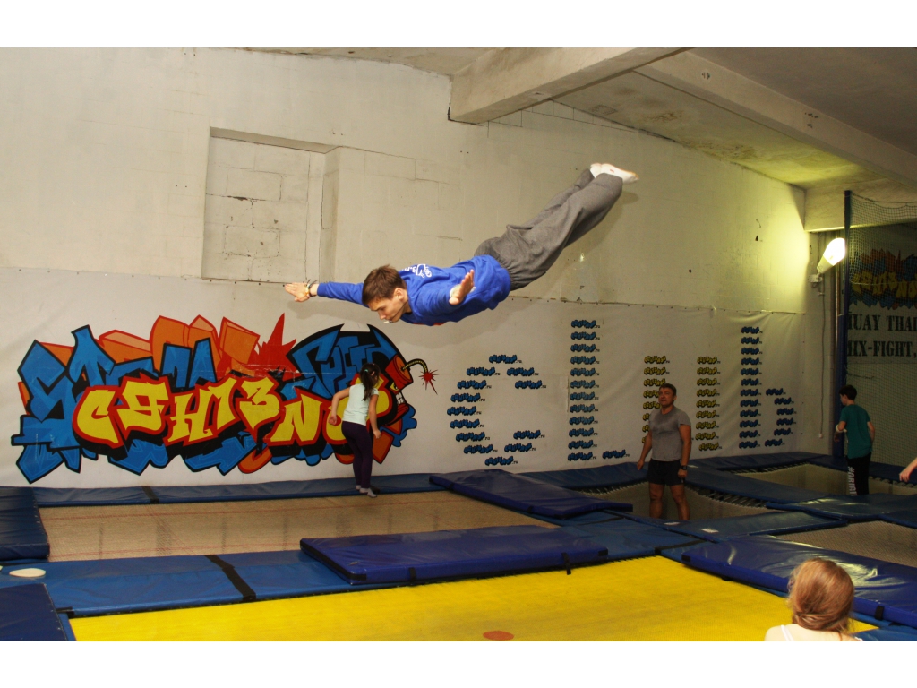 У нас в зале разместились: 18 батутов, из них 2 наклонных, батутная и акробатическая дорожка, поролоновая яма для безопасной отработки трюков по различным видам спорта, зона татами, слэклайны, джамперы (у нас единственные в помещении в городе) и тд. И цены - самые демократичные в городе - мы гарантируем! Есть посещения на всё на целый день за 200р! Такого больше нет ни у кого!